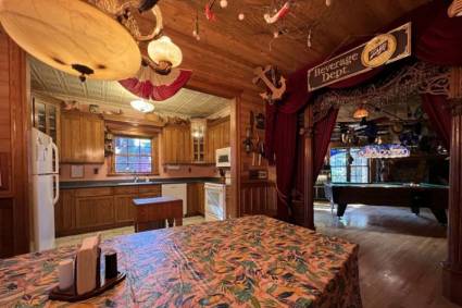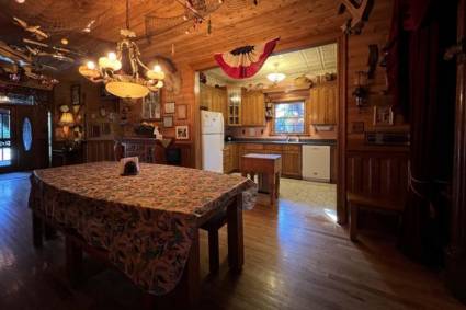 The main dining area is adjacent to the kitchen with appliances and utensils for your cooking pleasure.